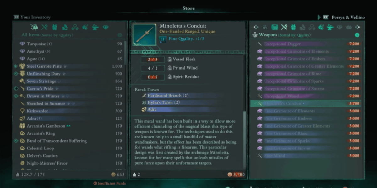 One of three Unique wands in Avowed, Minoletta's Conduit can be purchased from Abritt Porrya at Fior Mes Iverno in the Emerald Stair. It'll cost you a pretty penny, but a reliable wand is essential for those running a Wizard or Wizard multiclass build. Alongside its excellent range and additional attack, Minoletta's Conduit also deals an extra 10% Shock Damage on a hit.