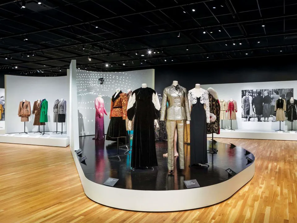 This striking arrangement of more than 30 designers examines how the suit revolutionized the female wardrobe—and pushed gender boundaries. Among looks by Halston, Givenchy, and Chanel, a contribution by Yves Saint Laurent most excites Florence Müller, the Avenir Foundation curator of textile art and fashion. It’s a gender-bending photograph of models Gia Carangi and Robin Osler in a 1979 issue of Vogue France, where the former is dressed in a slinky evening gown and the latter in a chic YSL tux.