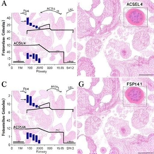 The team employed a comprehensive array of experimental approaches, including in vivo murine models of oxalate-induced AKI, alongside in vitro renal tubular cell cultures exposed to pathological oxalate concentrations. Through meticulous gene expression analyses, immunohistochemistry, and functional assays, the researchers documented a marked upregulation of ACSL4 concomitant with a downregulation of GPX4 and FSP1 activity during the acute phase of injury. This imbalance precipitates a surge in lipid peroxides, destabilizing cellular membranes and exacerbating cell death.