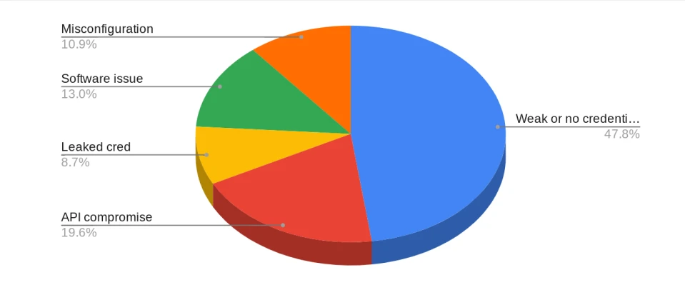 However, there was some positive news, with a slight decrease in misconfiguration and software issues. The increased use of leaked credentials partly offset the decrease.