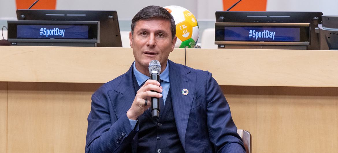 Iconic footballer, Javier Zanetti, now Vice-President of Inter Milan, speaks during the International Day of Sport for Development and Peace 2023 at UN headquarters.