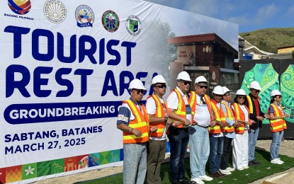 TOURIST REST AREA. Tourism Secretary Christina Frasco (extreme right) leads the groundbreaking ceremony for the soon-to-rise tourist rest area (TRA) in Sabtang, Batanes on Thursday (March 27, 2025). The TRA, funded by the Tourism Infrastructure and Enterprise Zone Authority, is a flagship program of the Department of Tourism where travelers can lounge in between their tours on the island and buy from a variety of local crafts and products unique to Batanes. (PNA photo by Joyce Rocamora)