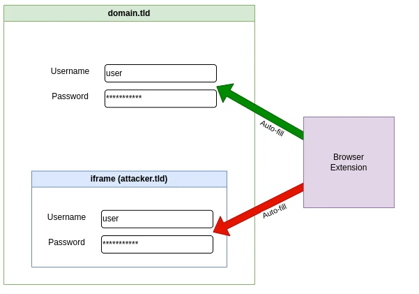 Curiously, even though they are from distinct domains, the extensions also automatically auto-fill forms that are defined in an embedded iframe.