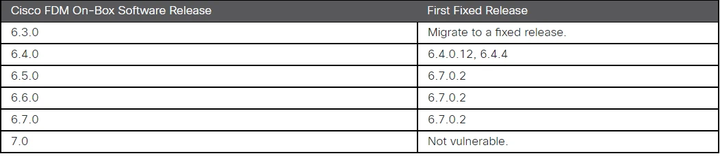 The report says this vulnerability affected Cisco FDM On-Box Software. Cisco mentions it’s not aware of the vulnerability being exploited in the wild.