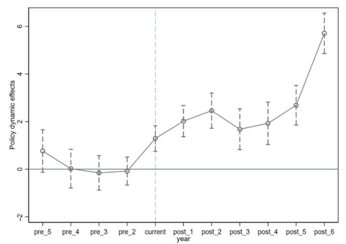 The use of the Paris Agreement’s 2016 adoption as a policy shock serves as an illustrative natural experiment, enabling clear differentiation between pre- and post-policy impacts on ESG metrics. This temporal delineation sharpens the analysis, revealing the dynamic and temporal nature of firms’ responses to international climate governance. The visualization of these effects, complete with confidence intervals, provides a nuanced understanding of how systemic risk factors modulate corporate sustainability efforts over time.