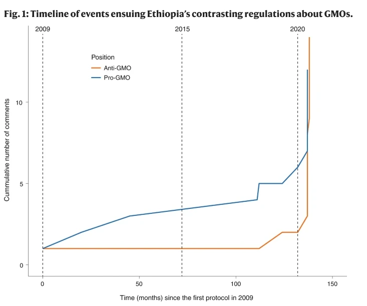 In a recent report, the US Department of Agriculture (USDA) recognized Ethiopia’s commitment to implementing the amended protocol. Although debates about gene-modified organisms (GMOs) in Ethiopia started immediately after the first prohibitive proclamation in 2009, they were low-key and mostly pro-GMO (Fig. 1). Severe criticisms against GMOs exploded following USDA’s accolades for Ethiopia’srelaxationof rules.