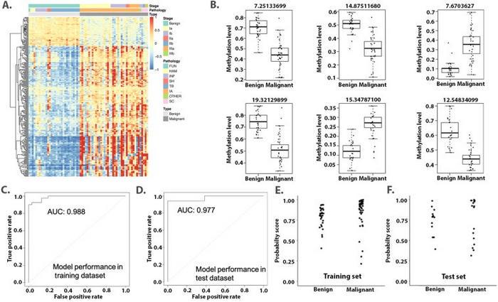 From the identified methylation markers, six specific sites displayed starkly different methylation patterns when comparing lung cancer cases to benign conditions within the tissue cohort. Among these markers, two were notably hypermethylated in lung cancer tissues, while the other four were hypermethylated in benign samples. This differentiation illustrates the potential of methylation profiles in guiding clinical decisions, potentially transforming how lung cancer is diagnosed and managed.