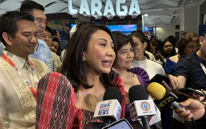MORE VISITORS. Tourism Secretary Christina Frasco answers questions from the media at the Travel and Tour Expo 2025 at the SMX Convention Center in Pasay City on Friday (Feb. 7, 2025).