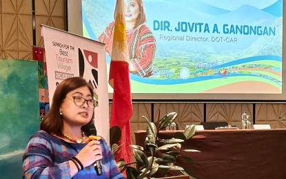 ANNUAL SEARCH. Department of Tourism-Cordillera Director Jovi Ganongan delivers her message during the opening of the annual search for the Best Tourism Village at a hotel in Baguio City on Wednesday (Feb. 12, 2025). At least 68 villages have applied for the search that started in 2022. (Photo by Liza T. Agoot)