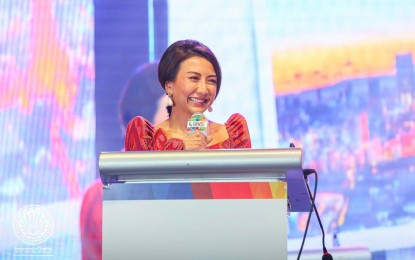 TOURIST ARRIVAL. Tourism Secretary Christina Frasco delivers her speech during the opening of the 35th Philippine Travel Mart (PTM) at SMX Convention Center in Pasay City on Friday (Sept. 6, 2024). Frasco said the Philippines is halfway through its arrival target for the end of 2024 after recording 4.08 million international visitors as of Sept. 5. (Photo courtesy of DOT)