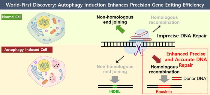 A groundbreaking advancement in the field of precision gene editing has emerged from a collaborative research effort led by Dr. Hye Jin Nam at the Korea Research Institute of Chemical Technology (KRICT). The team has successfully enhanced the efficiency of homologous recombination—a critical mechanism within the CRISPR-Cas9 technology—by inducing autophagy, a natural cellular process. This unprecedented discovery holds great promise for the treatment of genetic disorders, addressing the low efficiency often encountered in genome editing techniques.