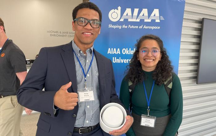 “At the conference, I presented my work on rotating detonating engine nozzles to students from other universities, professors and other AIAA members,” said Wilson, who along with his partner, Khushi Piparava, presented their work and won second place among student presenters. “I got to see the research and work done by my peers at other universities, and it solidified my plans to stay on at UTA and pursue my Ph.D. in aerospace engineering.”
