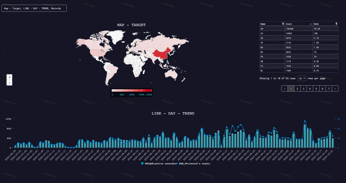 According to 360Netlab report, A total of 1,396 targets were attacked in a single day on October 11 when the attacks peaked at the top edge. A scanned script containing the word “N3t1@bG@Y” was used by the author of Fodcha to provoke the researchers.