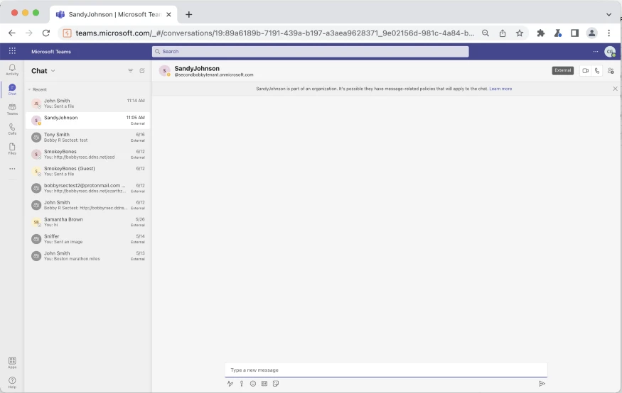 Due to security concerns, no external users are permitted to share any files with users in another occupant by default. The purpose of this feature is to prevent external users from sending malicious attachments via Microsoft Teams to a user in another organization.