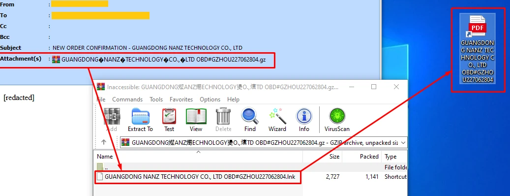 According to the report, A Chinese supplier of Lump and Rock Sugar (Guangdong Nanz Technology co. ltd) is purportedly sending phishing emails with the arrangement of an order confirmation message. Here the message contains a malicious LNK file that masquerades itself as a legit PDF doc.