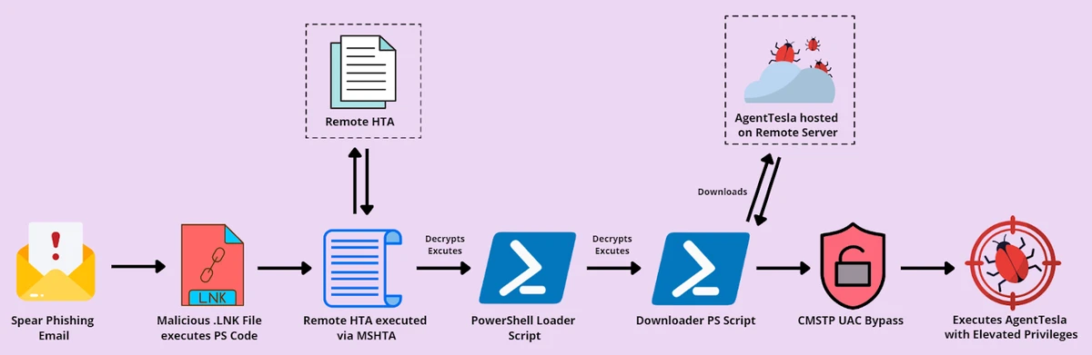 A PowerShell loader script, in turn, is decrypted and executed by the HTA file. Now to execute the Agent Tesla malware with administrative privileges, this script acts as both downloader and executor.