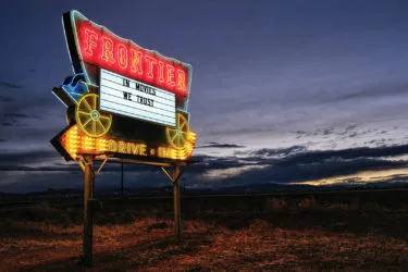 When the Frontier Drive-In debuted on May 14, 1955, more than 300 cars packed into its lot in the rural San Luis Valley. Whether initially drawn by opening night’s free admission or the opportunity to see Academy Award winner Edmond O’Brien avenge his murdered fiancée in Warpath, many in the crowd returned. Like movie houses and drive-ins across the country, the Frontier became a cultural lifeline for local ranching and farming families—until cable TV put it out of business in 1985. Now, 37 years later, Mark Falcone, a Denver developer whose Continuum Partners helped revamp Union Station, hopes to make the Frontier an artistic force in the region once again.