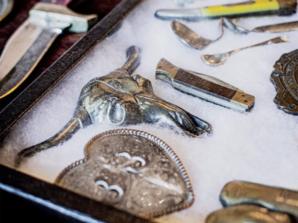 Owners and Florida transplants Corey Hubbard and Ryan Methfessel often throw dinner parties and community art shows in the historical, tin-ceilinged upstairs ballroom of their new art emporium and curiosities shop.