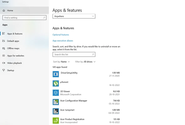 1. Delete From Apps & features