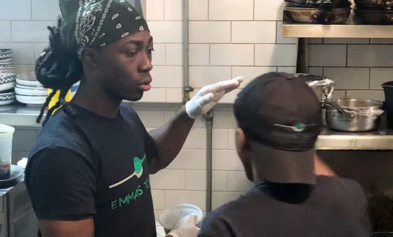 On a Friday afternoon, in a small restaurant kitchen in the New York borough of Brooklyn, head chef Alexander Harris is giving instructions to his attentive team, preparing them for the busy evening ahead. So far, the tables are empty, but the small, popular space, with just a handful of tables - and some stools around the bar - will soon be bustling with the evening crowd.