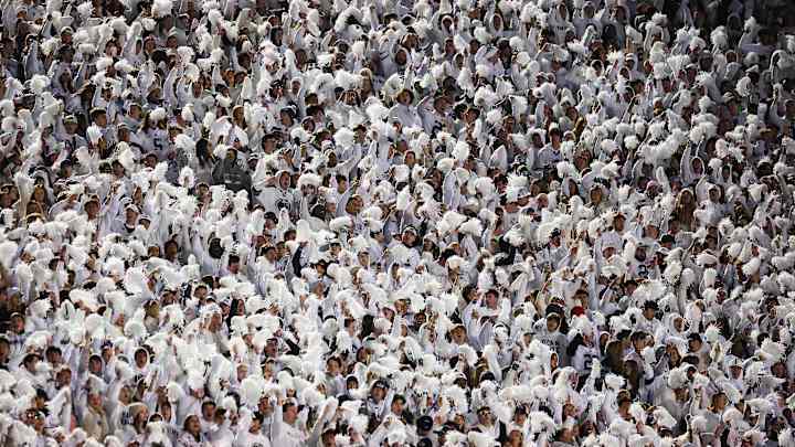 The Penn State College GameDay crowd breaks into a "F--- Big Noon" chant as the crew jokes about night games.