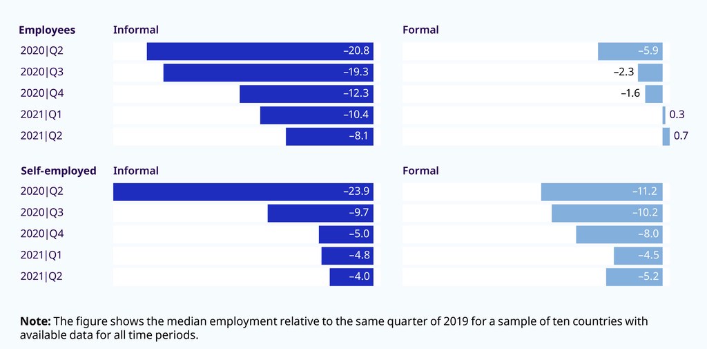 At the national level, labour market recovery is strongest in high-income countries, while lower middle-income economies are faring worst.