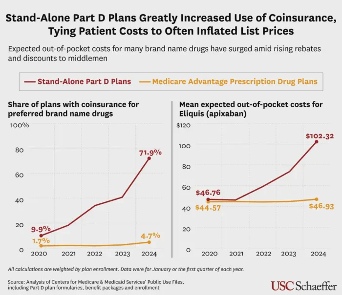 References: Trish, E. et al., "Out-of-Pocket Costs for Medicare Part D Beneficiaries: Increasing Reliance on Coinsurance," JAMA, 2024.