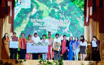 BEST TOURISM VILLAGE. The loop destinations in Barangays Damag, Jamal, Bunhian in Alfonso Lista town, Ifugao province bagged first place in the 2023 Department of Tourism (DOT) Cordillera's search for the "Best Tourism Village", winning PHP1 million. The villages' representatives are shown receiving the award. (File photo by Liza T. Agoot)