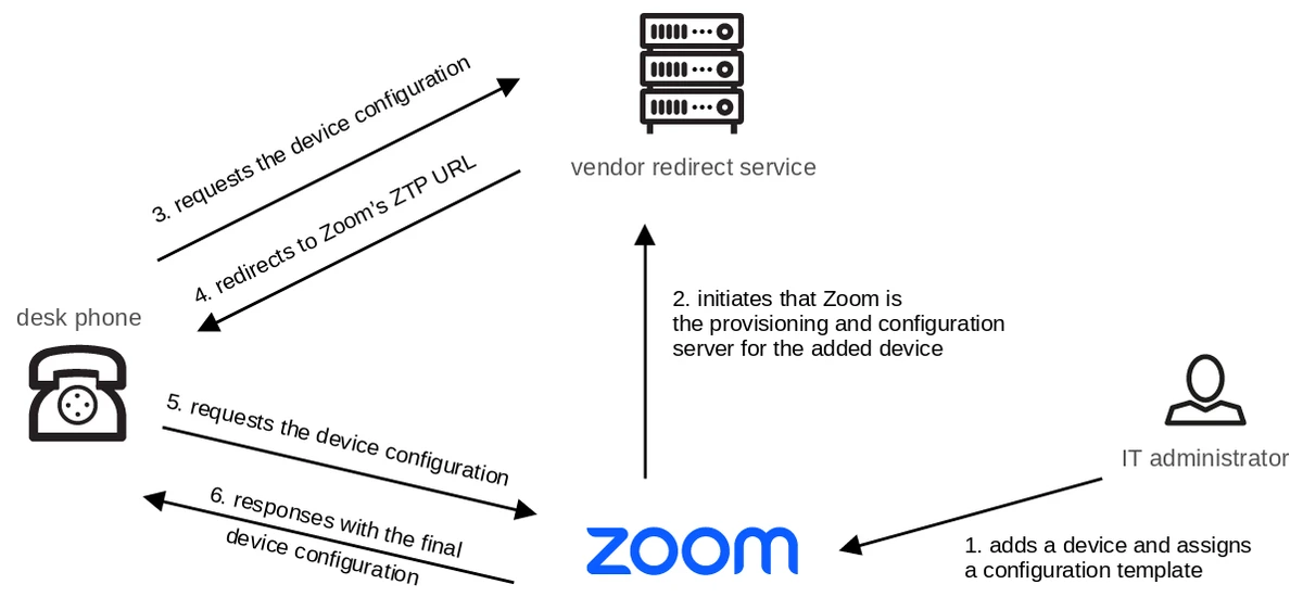 Zoom’s ZTP supports a wide range of devices and is one of the most reliable providers for integrating traditional devices. An IT administrator can use ZTP to assign a device to a user and set configurations which are then queried by the device at Factory settings.