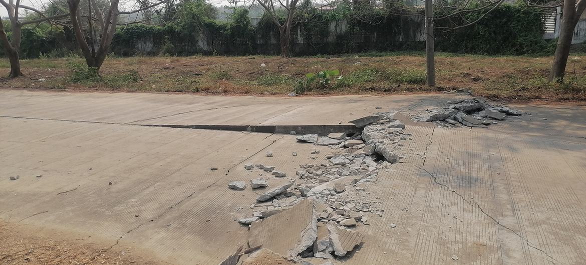 Severe damage to Naypyidaw's road infrastructure following the earthquake in Myanmar.