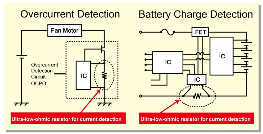 Shunt resistors are widely used in the automotive and industrial markets to detect current in high power sets. In the automotive field, the shift towards computerization and electro-mechanical systems resulting from the need to provide greater safety and efficiency along with the emergence of electric vehicles has increased the number of number of small motors and ECUs required, driving the demand for compact shunt resistors that can support higher power. In response, ROHM has expanded its high power, ultra-low resistance PSR lineupto include even smallersizes.