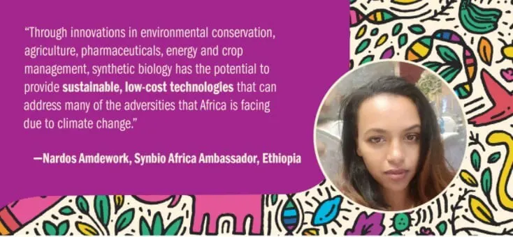 Nardos Amdework holds a master’s of science in environmental planning, is a Synbio Africa Ambassador and a 2019 Alliance for Science Global Leadership Fellow. You can follow Nardos on Twitter @hode1907