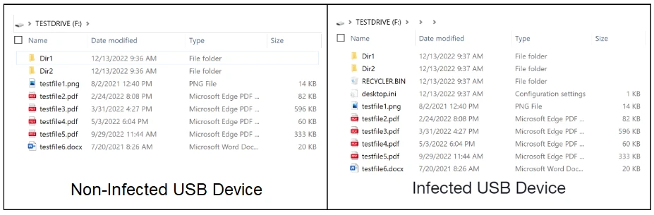 The malware creates a ‘RECYCLER.BIN’ subdirectory on the USB device which acts as a mask and hosts the copies of the malware. In late 2020, Sophos researchers discovered that an older version of PlugX was used to carry out this kind of technique and attack.