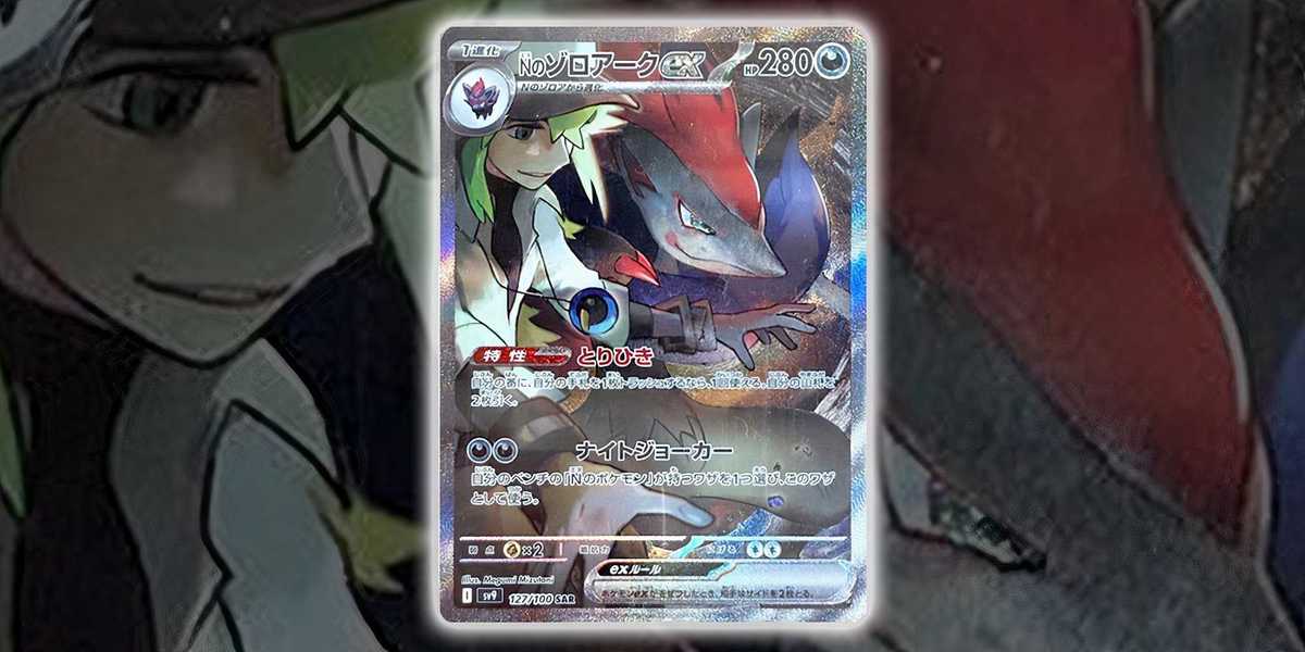 Zoroark is known to be a rather crafty Pokémon due to its ability to disguise itself as any human or Pokémon, so it's only natural that the secret rare artwork for N's Zoroark hints at this somewhat devious nature. The illustration made by Megumi Mizutoni shows Zoroark in a battle-ready stance, smiling at whatever opponent is facing it down. All the while, N stands beside it, appearing rather calm as he issues battle commands.