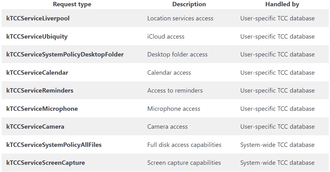TCC (Transparency, Consent, and Control) is a technology that was initially launched with macOS Mountain Lion by Apple in 2012, and this technology was launched by Apple to help the users to configure their privacy settings for the device’s apps like:-