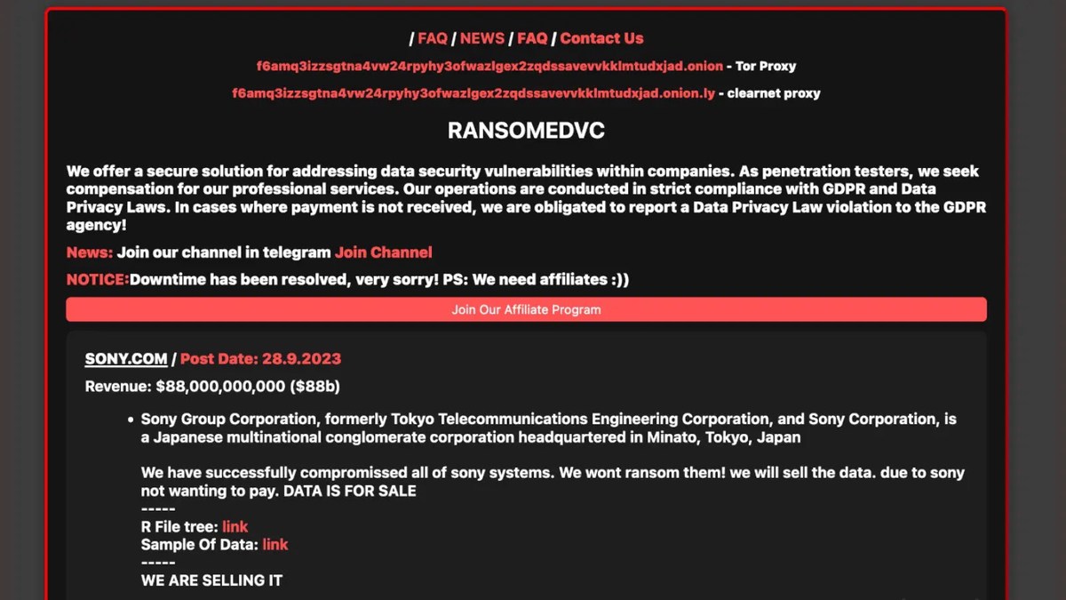 The ransomware operators claim Sony breach on the dark web, but Sony hasn’t responded yet on this matter or claims. Since it’s one-sided information from threat actors only, the validity of the data breach is still uncertain.