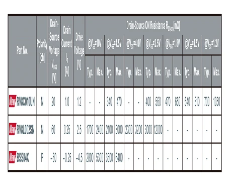 ROHM has released the ultra-compact AEC-Q101 qualified MOSFETs, RV8C010UN, RV8L002SN and BSS84X, best-in-class 1mm2 size that deliver automotive-grade reliability. The products are suitable for high-density applications such as ADAS and automotive ECUs.