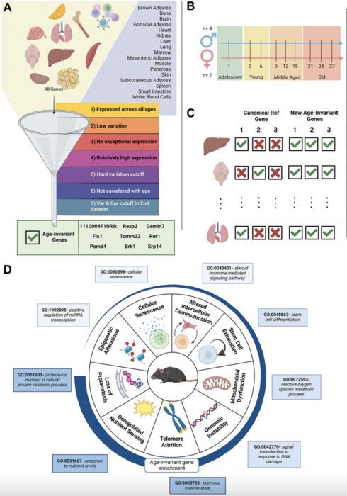 The study looked at gene activity in 17 different tissues in mice, from 1 month old to over 21 months old. Scientists used advanced bioinformatic analysis methods to analyze RNA sequencing data. They found nine genes that stayed the same across all tissues, as well as other genes that remained stable in specific tissues. These genes are usually shorter and have special DNA regions called CpG islands, which may help cells stay healthy and resist aging. Their stability throughout aging was confirmed by analyzing different datasets and using RT-qPCR.
