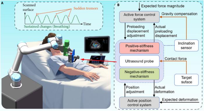 Recent advancements in robotic ultrasound technology are poised to revolutionize the field of diagnostic imaging, focusing on the significant enhancement of imaging consistency. One of the primary challenges in this sector is the ability to maintain stable contact force amid dynamic physiological changes such as breathing and involuntary movements, commonly referred to as tremors. Traditionally, continuous sensor recalibration has been required to address these fluctuations, a requirement that can complicate the operation of ultrasound machines significantly. However, a team led by Qingsong Xu, an esteemed professor at the University of Macau, has developed a groundbreaking solution that integrates a hybrid active-passive force control mechanism. This innovative approach promises to decouple the force regulation process from the dependency on real-time feedback while ensuring adaptability to a wide range of patients.