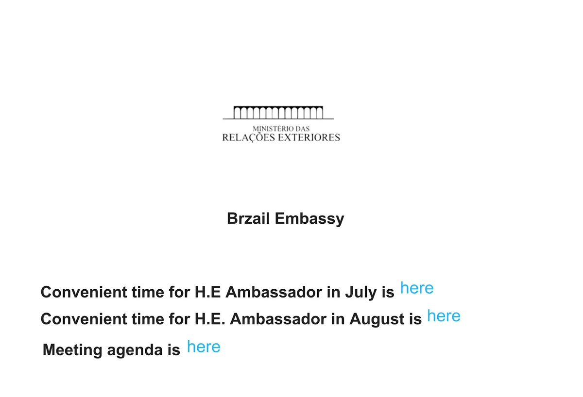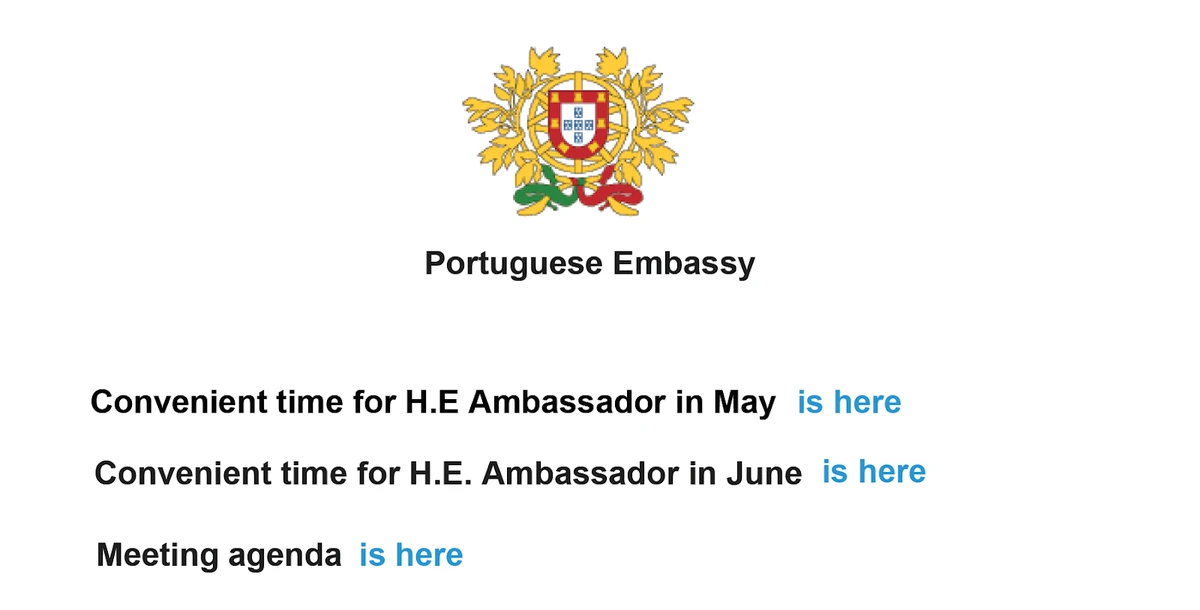 The lure document in both emails was named Agenda.pdf, which is the same file in both emails. An agenda for a meeting with an ambassador to Portugal was provided as a link in the email.
