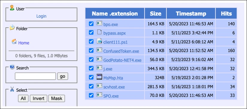 This RAT connects to a server containing various tools, including a Fast Reverse Proxy tool that enables attackers to reveal local servers from behind a NAT, remote access scripts, downloader scripts, webshells, Cobalt Strike beacons, and exploits.