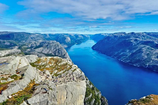 No Southern Norway road trip would be complete without a stop at the iconic Preikestolen (Pulpit Rock) and the breathtaking Lysefjorden. Preikestolen is one of Norway’s most famous natural landmarks, with its flat-topped cliff towering over 600 meters above the fjord below. The hike to the top is both challenging and rewarding, offering incredible views of the surrounding landscapes and the deep blue waters of Lysefjorden. The journey through the rugged cliffs and serene fjord is an experience of pure natural beauty, making this destination one of the most spectacular in the region.