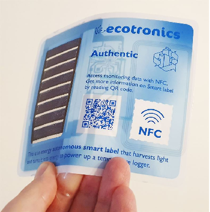 VTT and the university partners have tested the feasibility of new sustainable solutions through demo cases. The subject of one demo was a smart label printed on bio-based plastic, which is powered by a supercapacitor rechargeable with solar panels, even indoors. The label can be added as a part of the product packaging and can be used to monitor, for example, the transport conditions of food and medicines or other heat-sensitive products. The solution is also suitable for monitoring different spaces and, among other things, for monitoring moisture, pressure or damage sustained by products. Another demo case concerned a biodegradable antenna connected to a circuit board, which is suitable in, for example, wireless transfer of measurement data.