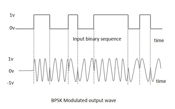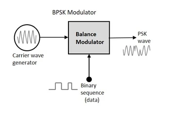 Since shifting a sine wave by 180° is the same as inverting it, this simplifies modulator design; the carrier is inverted for one logic state and untouched for the other. Figure 2 is a simplified representation of a BPSK modulator, where the balance modulator the carrier signal as one input and the binary sequence as the other input. In practice additional circuity is required to avoid “high-slope” events where the carrier signal voltage changes rapidly from maximum to zero, generating high-frequency energy which could potentially interfere with other RF signals. These events can be avoided by ensuring that the digital bit period is equal to one or more complete carrier cycles and also by synchronising the digital transitions with the carrier waveform. These refinements ensure that the 180° phase change occurs when the carrier signal is at (or very near) the zero-crossing.