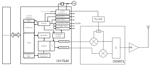 Even a relatively simple IoT device, such as a wireless sensor, can integrate multiple technologies, including wireless connectivity, cloud architecture, real-time performance, end-to-end security and sophisticated software algorithms. As with any new, emerging market, the IoT is in a continuous state of flux, with the associated technologies and relevant standards still evolving. In such a fast-changing landscape, future proofing of design is critical, and this is built-in to the CMX7146 with CML’s proven FirmASIC® technology, where a Function Image™(FI) file, defining the operational capabilities of the device, may be obtained from the CML Technical Portal. The Function Image™ file is downloaded at system power-up, either from the host controller or external memory. This increases the flexibility and lifetime of an end-product, by taking advantage of future functionality upgrades provided by CML, such as alternative modulation schemes or over air protocols.