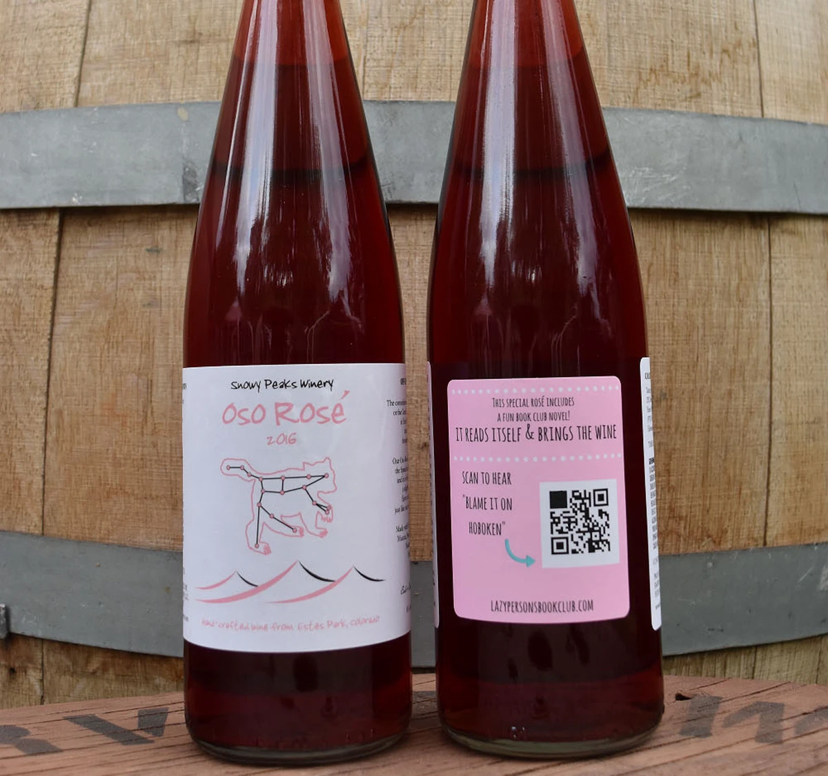 Now, you can purchase a bottle of book club wine at Snowy Peaks or online. The wine, called Oso Rosé, is a Colorado-grown and produced, nontraditional dry rosé that comes with a QR code that takes the drinker/reader to a link with the audiobook. “People can sit back, drink in the book, while they sip this lovely, refreshing rosé, hang out with friends or—if you’re an introvert like me—hang out by yourself in your book club of one, and regardless have a lot of fun,” says Glassman.
