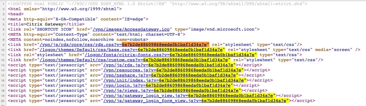 As part of the response, Citrix ADC and Gateway product versions could be identified using MD5 hash-like parameters provided by the responses.