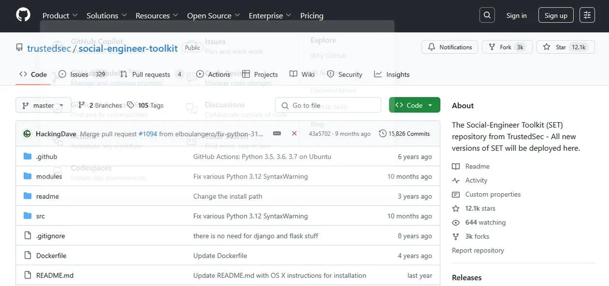 Written in Python and widely used by security professionals, SET automates the creation and execution of advanced attack vectors to assess and improve an organization’s resilience against human-targeted threats.