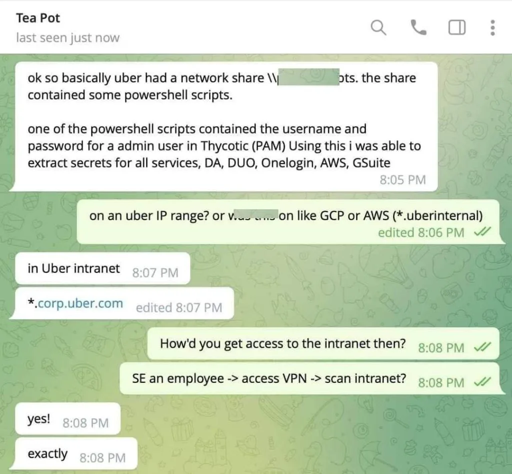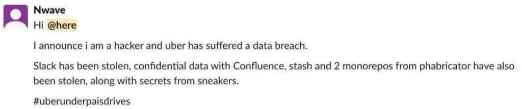 After a social engineering attack against an Uber employee and stealing the password of that employee, the threat actor claimed they had breached the company.