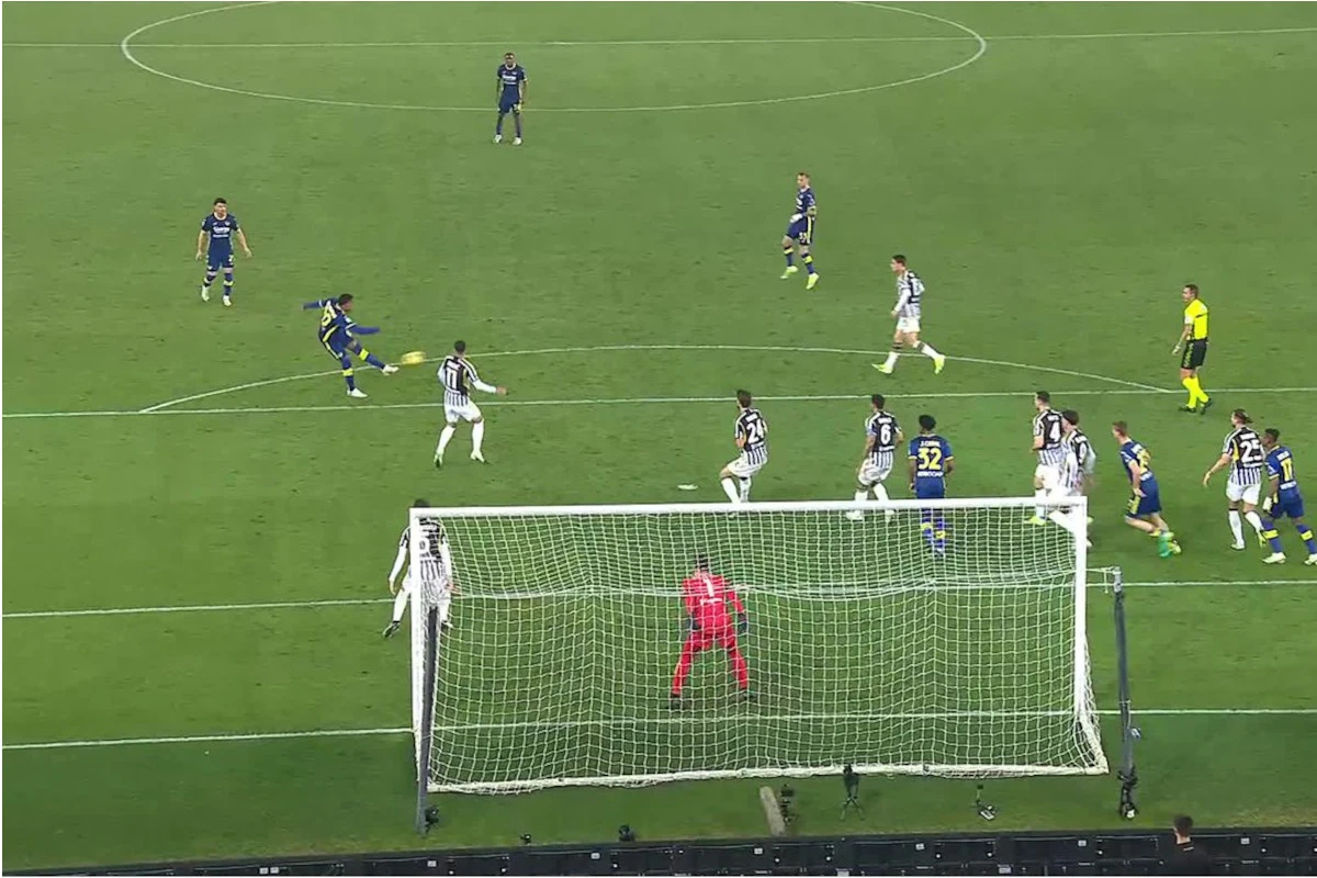 Watch as Michael Folorunsho gives Hellas Verona the surprise early lead against Juventus with one of the cleanest volleys you will ever see.